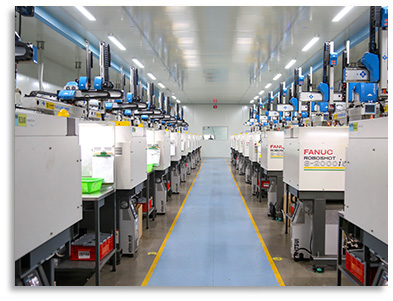 全封闭生产,车间恒温恒湿,水压恒定,配备集中供料系统,全部为 日本进口的发那科注塑机,性能稳定,